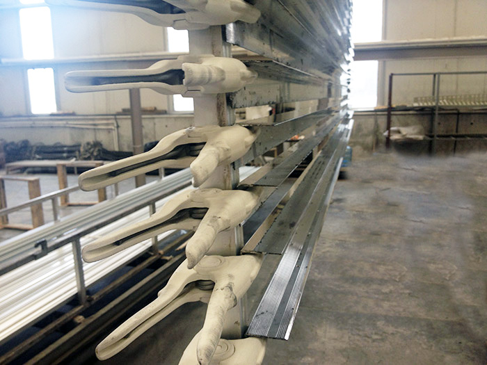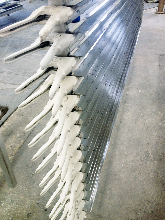 Alüminyum ekstrüzyon profillerin eloksal kaplama işlemi için askılanmasında kullanılan ürünümüz, hat boyunca tüm tespit banyolarındaki sıcaklık ve kimyasal etkilere karşı dayanıklıdır. Bu özellikleri sayesinde uzun süre kullanılabilmektedir. Ürün 3 farklı boyut ve modelde üretilmekte olup bir çok firma tarafından tercih edilmektedir.