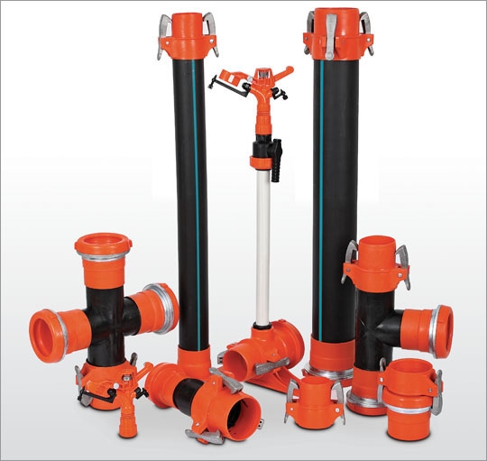Kelepçeli yağmurlama sistemleri, Türk Patent Enstitüsü’nce de onaylanmış olup Ø75 mm, Ø90 mm, Ø110 mm,Ø125 mm, Ø140 mm ve Ø160 mm çaplarında tedarik edilmektedir. Tüm ek parçaları mevcuttur.